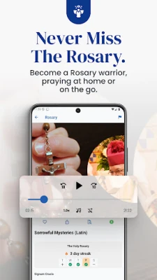 - Audio and text for Rosary, saints, novenas, and Breviary